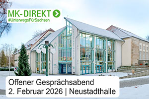 Aufgrund der begrenzten Platzkapazität sowie des Gesprächsformates ist eine vorherige Anmeldung unbedingt erforderlich. Diese muss bis spätestens 30. Januar 2026, 12:00 Uhr, über das Beteiligungsportal Sachsen unter